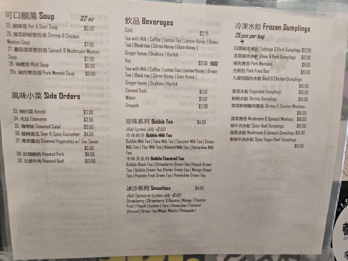 The soup selection is equally tempting, with options like Shrimp and Chicken Wonton Soup leading the pack at just $8. Pair your meal with one of their refreshing bubble teas, crafted to complement every dish effortlessly.